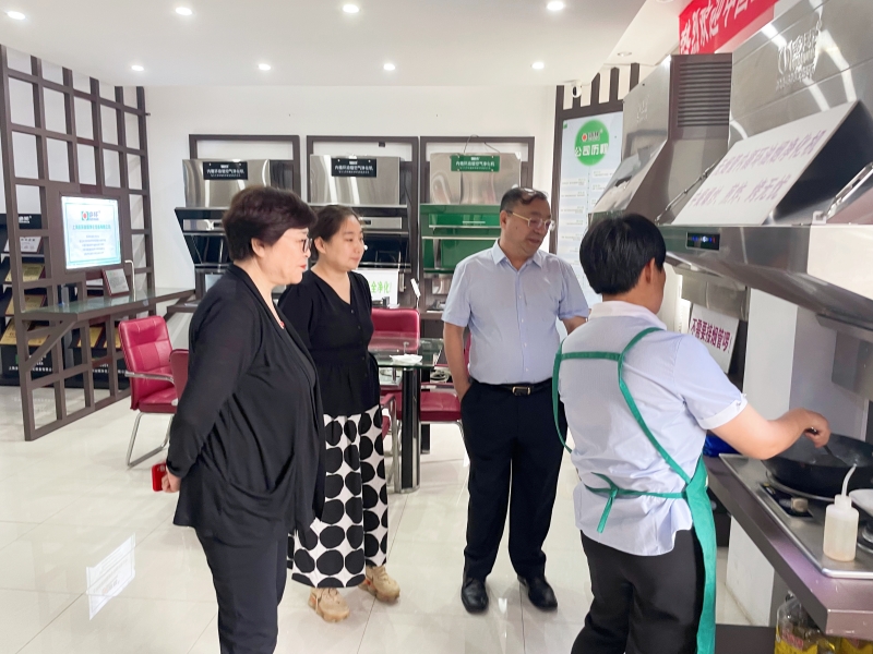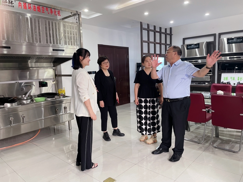 隨后,公司帶領協(xié)會領導們參觀了樣品間和展示廳。在展示廳內,市場總監(jiān)何楊介紹了多環(huán)公司自主研發(fā)生產的7款“內循環(huán)油煙凈化機”專利產品,對每款產品的性能、應用場景都一一做了講解。參觀過程中,李基英副理事長和邵白秘書長與工作人員密切交流,詢問了解產品的特點,并由操作員現(xiàn)場演示爆炒辣椒、洋蔥,經多環(huán)公司生產的“內循環(huán)式油煙空氣凈化機”的處理,可做到不需要外接煙管直接采用吸排凈化一體的形式直接在室內就將烹飪中產生的油脂、煙顆粒物、異味、有害氣體及余熱進行了全部的凈化處理,機器排出來的就是干凈的空氣,在房間內完全聞不到辣味嗆味。協(xié)會領導看到眼前這一幕,當場對產品的性能贊不絕口。