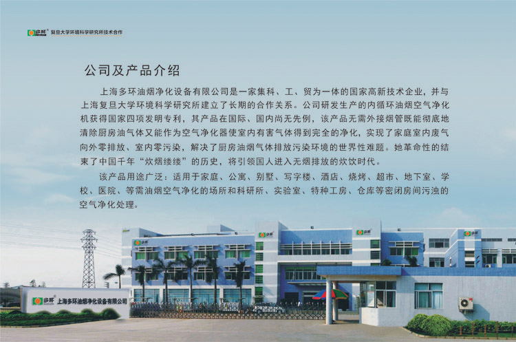 無煙管內(nèi)循環(huán)油煙凈化器是采用高科技手段將廚房及烹飪場所產(chǎn)生的有害氣體在室內(nèi)進行凈化處理的一種電器設備。目前國內(nèi)、國際尚無該種設備的先例。上海多環(huán)油煙凈化設備有限公司科研團隊從解決社會大氣污染及凈化家庭室內(nèi)空氣出發(fā)經(jīng)過多年的研究和實驗開發(fā)生產(chǎn)出了一種適合國人烹飪需要的不用接煙管向室外排放的內(nèi)循環(huán)油煙凈化器,它的主要特點是將人們廚房生活產(chǎn)生的廢氣通過室內(nèi)安裝的凈化器進行凈化處理,實現(xiàn)了家庭室內(nèi)廢氣向室外不排放,室內(nèi)室外無污染,解決了廚房油煙氣體排放污染環(huán)境的世界性難題。